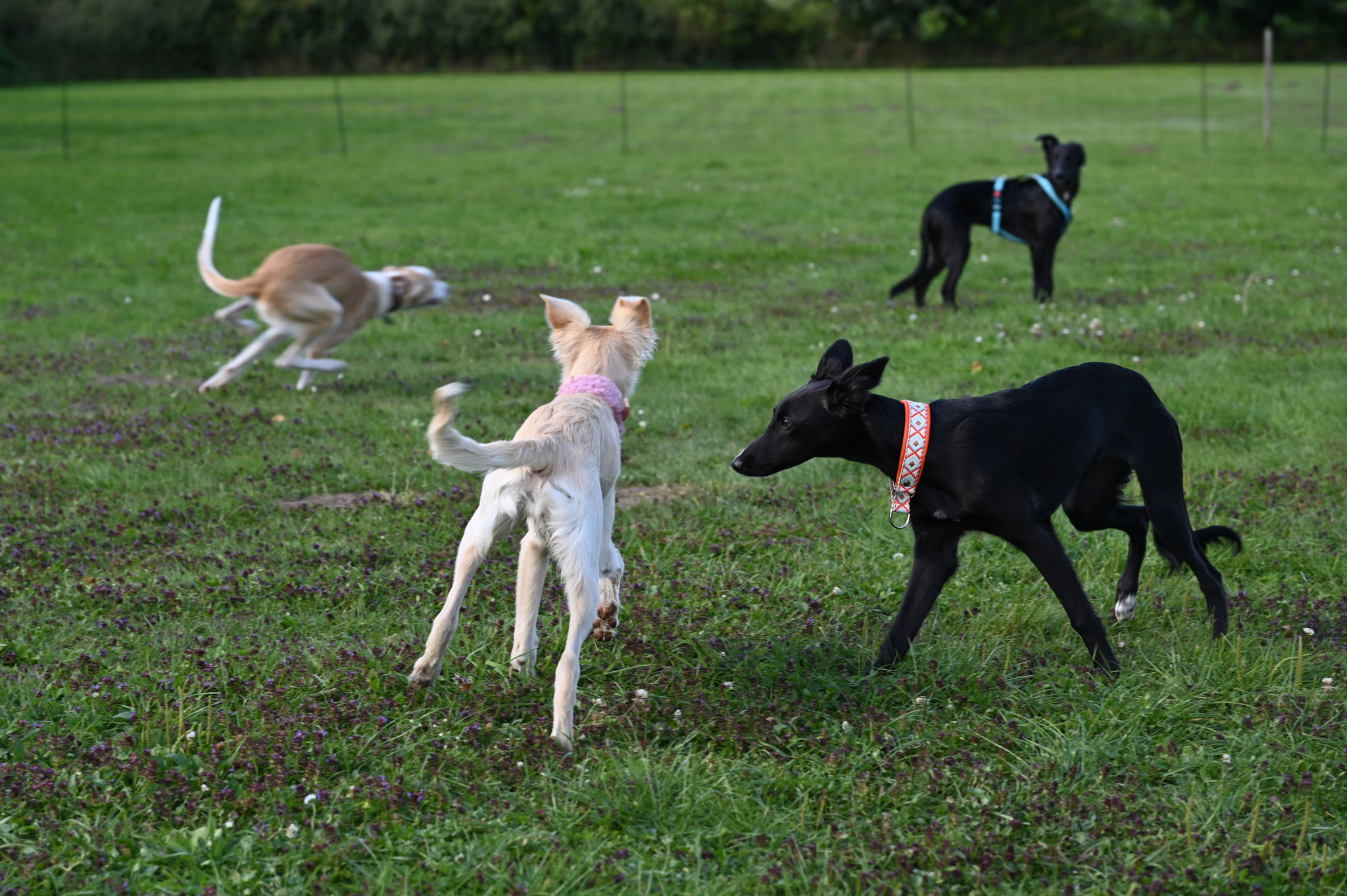 schön alle zu treffen und immer eine Freude Coco's Sohn Monti aus dem F Wurf und Dori's Sohn Toto "Pünktchen II" miteinander rennen zu sehen. Ich habe Carmi, Coco und Calista dabei.